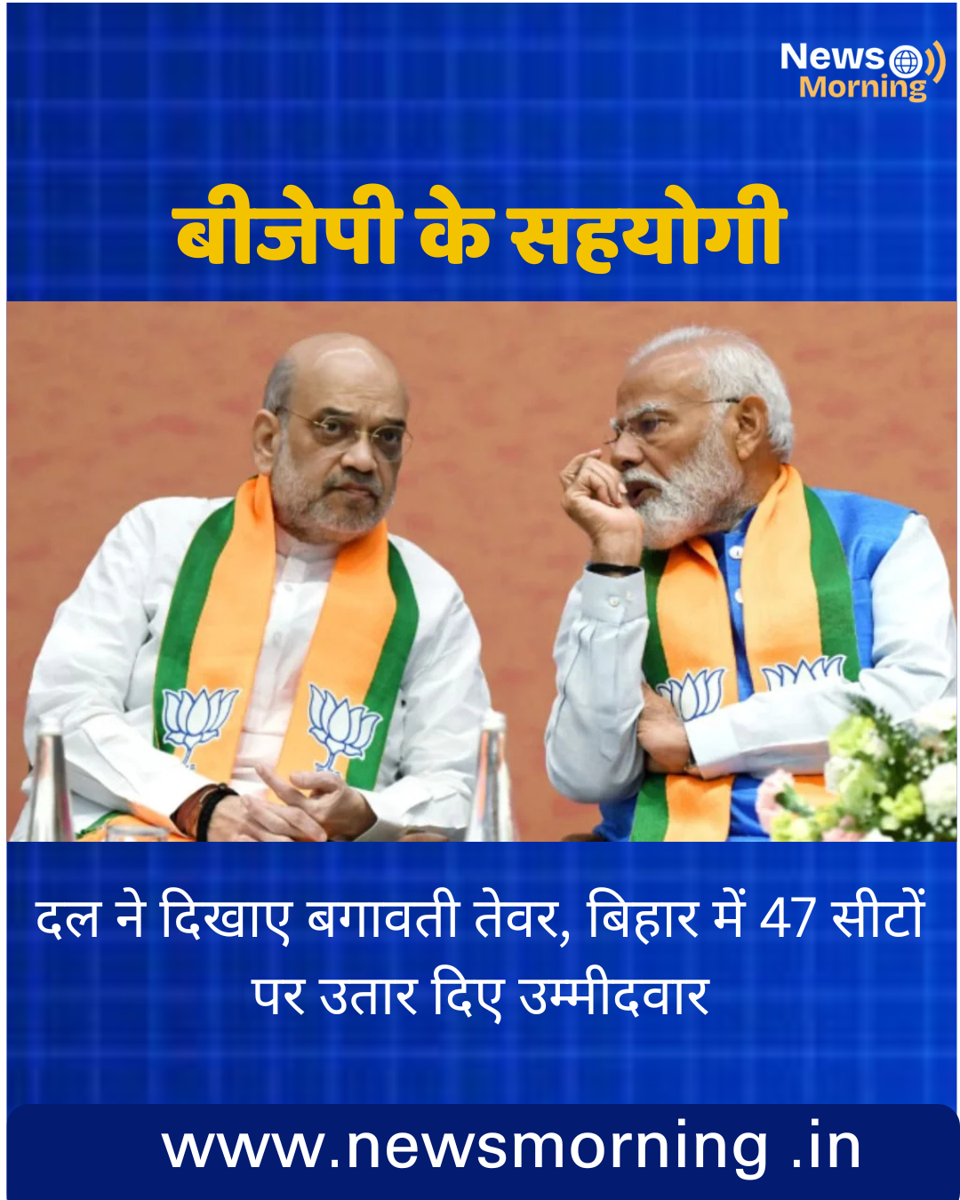 बीजेपी के सहयोगी दल सुहेलदेव भारतीय समाज पार्टी (सुभासपा) ने बगावती तेवर दिखाते हुए बिहार विधानसभा चुनाव में 47 सीटों पर अपने उम्मीदवारों के नाम का ऐलान कर दिया है। ओम प्रकाश राजभर ने बीजेपी से 4 से 5 सीटें देने की मांग की थी लेकिन जब एनडीए ने सीट बंटवारे का ऐलान कर दिया तो राजभर ने कहा था कि उनकी पार्टी भी बिहार में विधानसभा चुनाव लड़ेगी और अब सुभासपा ने उम्मीदवारों की सूची जारी कर दी है।