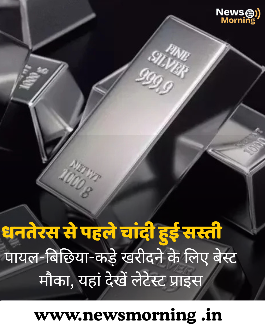 धनतेरस से पहले आज यानी 16 अक्टूबर 2025 को चांदी की कीमत में गिरावट देखने को मिल रही है। पिछले कुछ दिनों से लगातार तेजी के बाद आखिरकार आज चांदी की कीमत में 1000 रुपये प्रति किलो की गिरावट आई है। अगर आप पायल, बिछिया, कड़े खरीदने का सोच रहे हैं तो यहां आपके शहर के चांदी के लेटेस्ट प्राइस चेक कर लें…